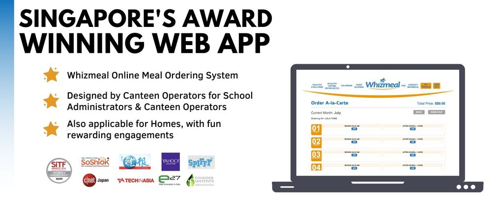 Note: Singapore Whizmeal awarded winning web app is an online ordering system that is created by canteen operator for school. It allows students to pre order healthy school meal. Right now, Whizmeal is opening up the system to allow parents and child to use at home in their own ways.